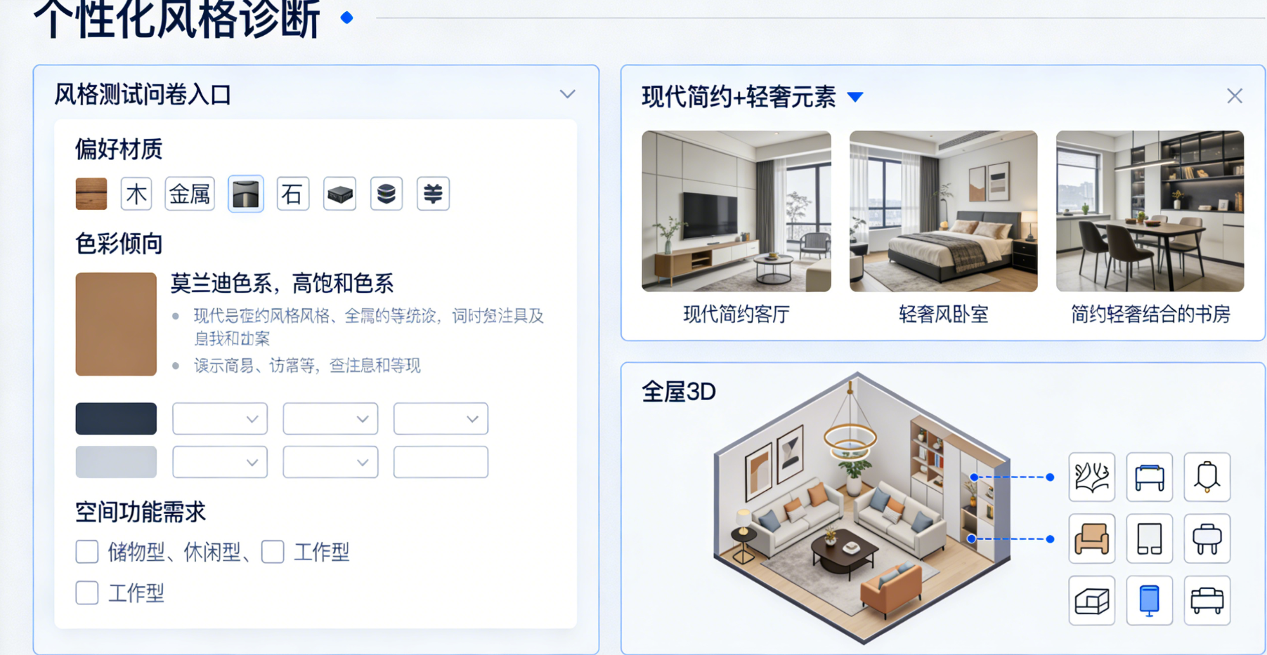 当前家居行业全屋定制领域面临“个性化需求旺盛与服务效率低下”的核心痛点:随着居民生活水平提升,80%以上的新房业主存在全屋定制需求,期望实现“空间利用率最大化、风格统一化、功能个性化”的居住体验。但传统全屋定制模式存在诸多弊端:一是沟通成本高,业主与设计师需多次现场对接,需求传递易出现偏差,平均沟通周期长达15-20天;二是设计效率低,人工绘制3D效果图需3-5天,且修改迭代繁琐;三是空间利用率不足,传统设计依赖设计师经验,难以精准匹配户型结构与收纳需求,平均空间浪费率达10%-15%;四是交付周期长,从设计定稿到成品安装需45-60天,且易出现尺寸误差、风格不符等问题,用户满意度不足60%。